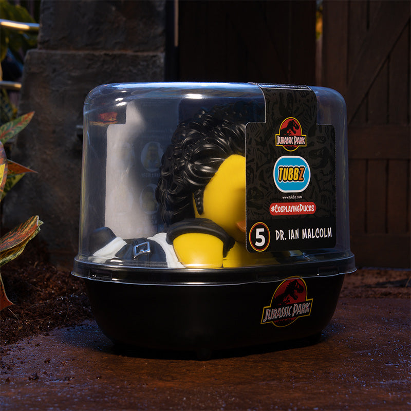 انضم خبير نظرية الفوضى الجذاب إيان مالكولم إلى المجموعة مرتديًا شكل بطة جديدة للهروب من براثن جميع المخلوقات البدائية المتربصة في الحديقة! تم تقديم هذه التحفة الفريدة من نوعها في حوض استحمام رائع مستوحى من حديقة جوراسيك، وهي مثالية لمحبي السلسلة.