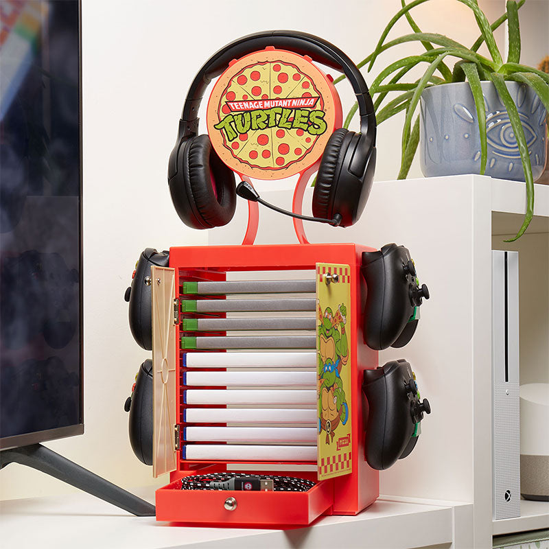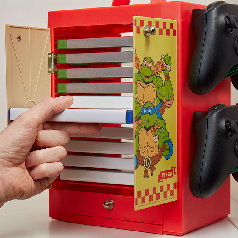 Keep your play space neat and tidy so you have room for your pizza with this Teenage Mutant Ninja Turtles play locker. Designed with a top mount for your headphones, it can hold up to 10 Xbox One/Xbox Series X|S games, PS4/PS5 games or movies and there's a handy drawer for other essentials.