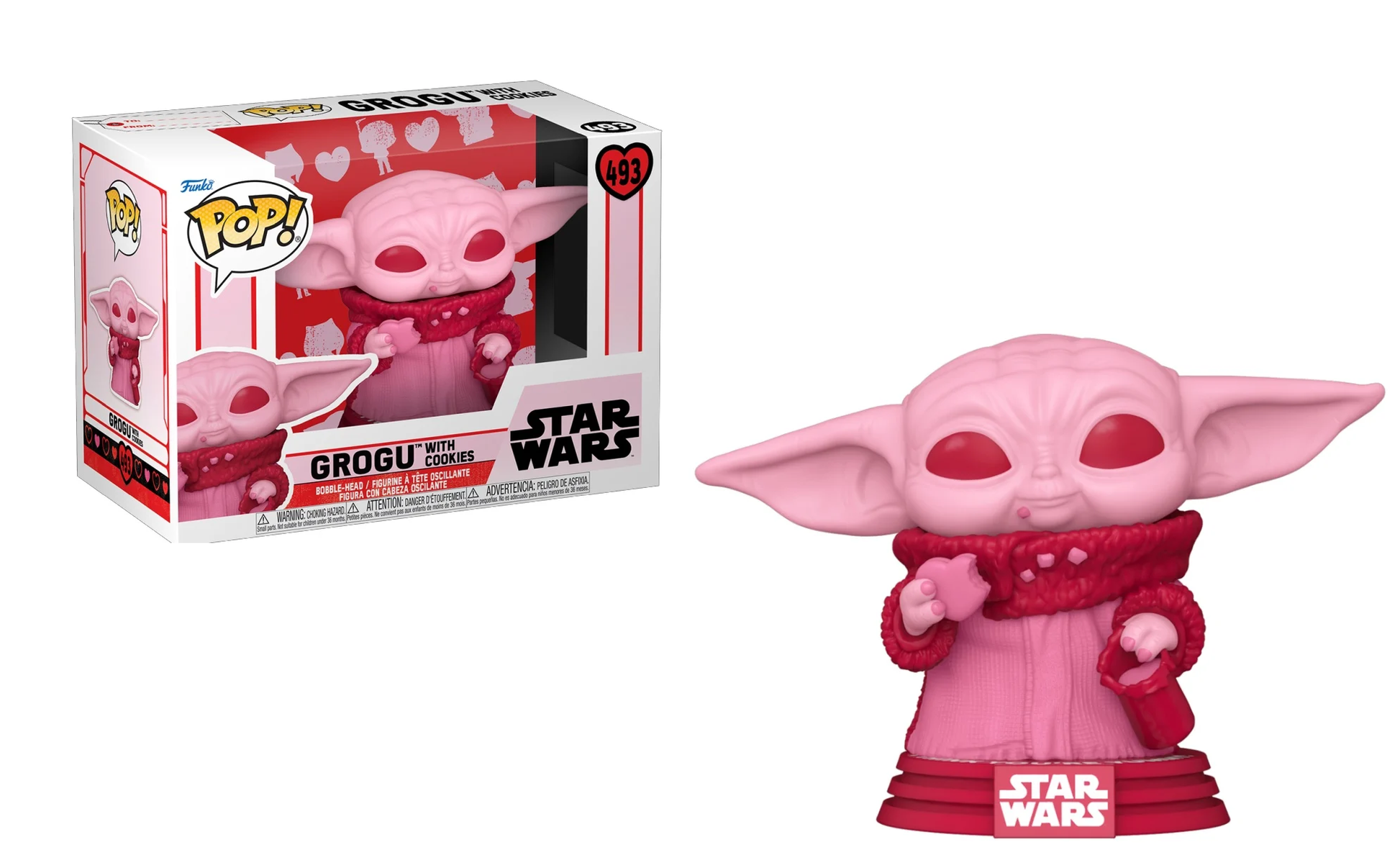 This Pop! features Baby Yoda himself, Grogu, who is devouring some delicious heart-shaped cookies.
