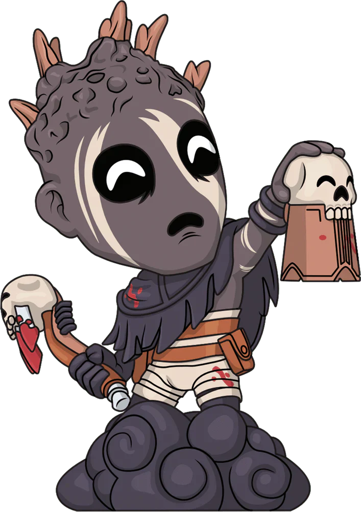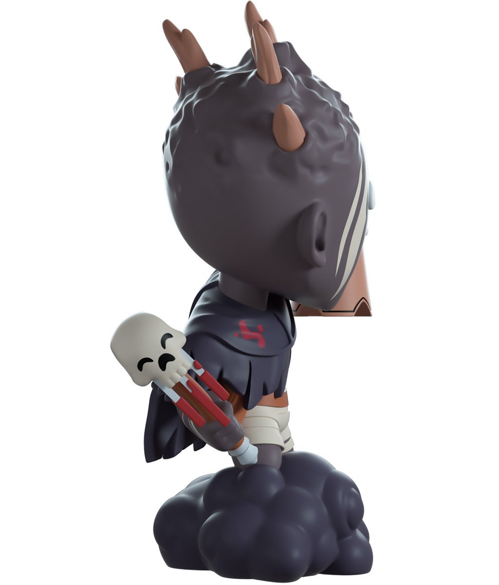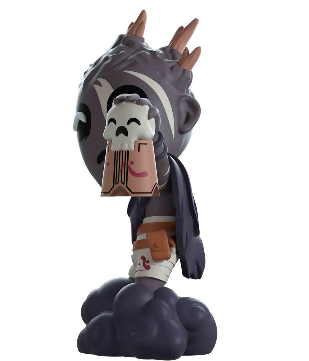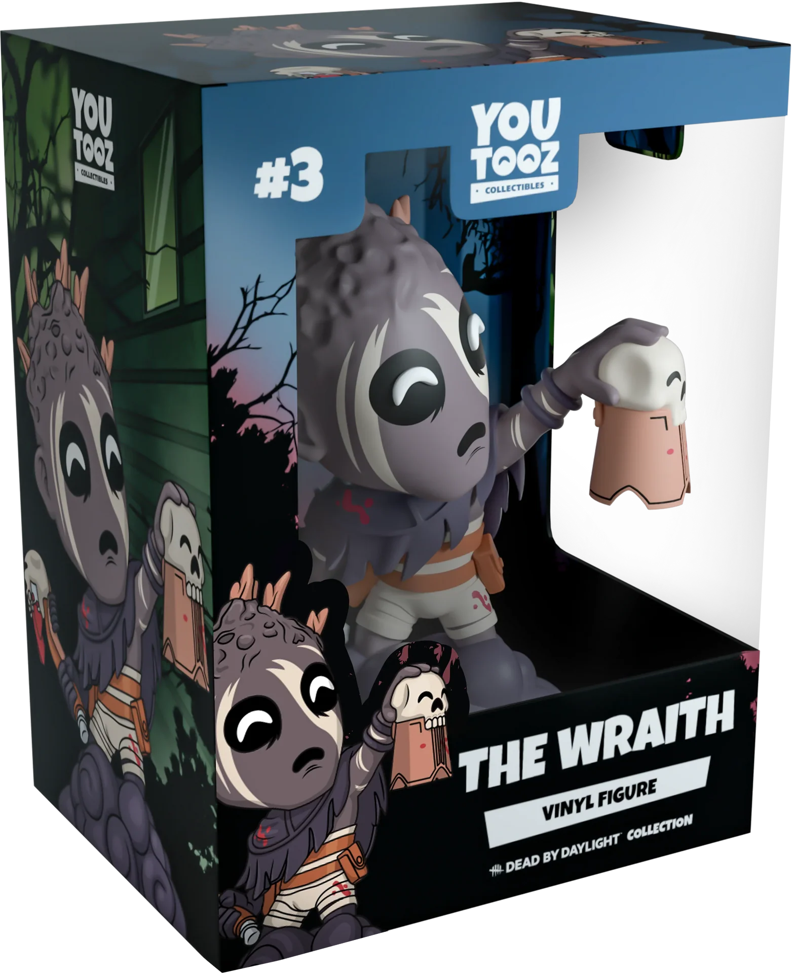 Le Wraith fait une entrée furtive en flottant dans Youtooz ! Mesurant 12,5 cm de haut, il tient une cloche en forme de crâne marron et blanc dans sa main gauche, tandis que sa main droite est recroquevillée en arrière, prêt à frapper de manière redoutable avec une hache ensanglantée. Avec du bois brun pointu émergeant d'une tête grise noueuse et tordue, des traînées blanches rampent sur son visage macabre aux yeux noirs profonds pleins de désespoir. La courte cape en lambeaux qu'il porte drapée sur ses épaules recouvre un corps bandé et attaché avec des ceintures marron, tandis que ses jambes disparaissent dans la masse de fumée tourbillonnante à sa base. À l'extérieur de son emballage, le Wraith a jeté son dévolu sur vous alors qu'il flotte dans une clairière boisée. Alors que l'intérieur est une forêt à la silhouette noire avec une brume rouge et bleue brillante et le logo blanc « Dead by Daylight » à l'arrière, ce motif sinistre se poursuit ensuite sur la pochette de protection avec des arbres sombres qui l'entourent complètement tandis que la figure peut être vue à travers la grande fenêtre transparente à l'avant. Cet objet de collection est livré dans une pochette extérieure protectrice mate et gaufrée et un protecteur en plastique de taille personnalisée pour une protection maximale pendant l'expédition. @therealracckun.