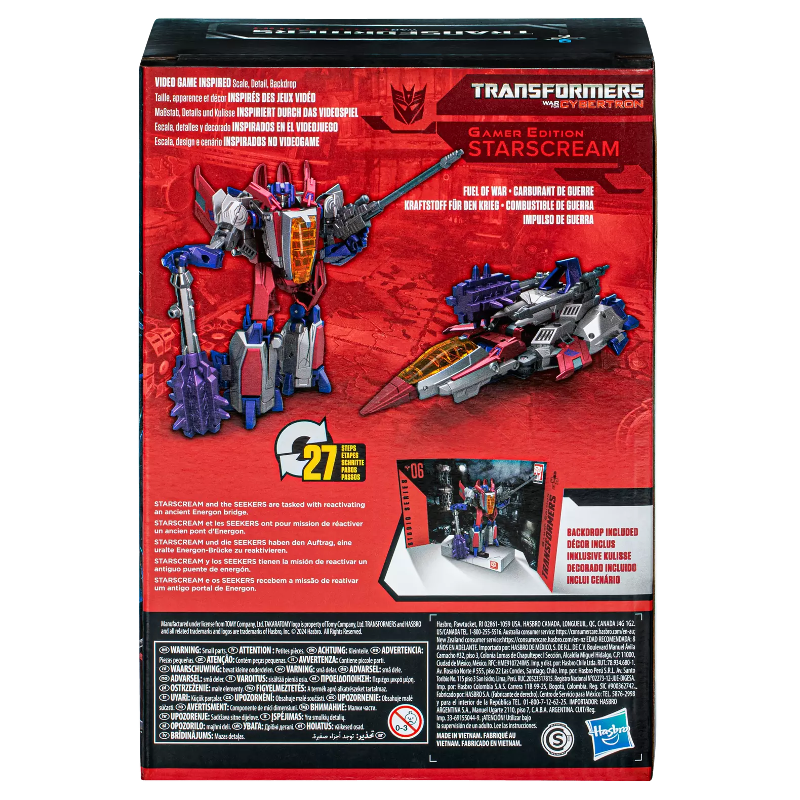 - La figurine Transformers Generations Studio Series 06 Gamer Edition Starscream est hautement articulée et a un design et une déco inspirés des jeux vidéo