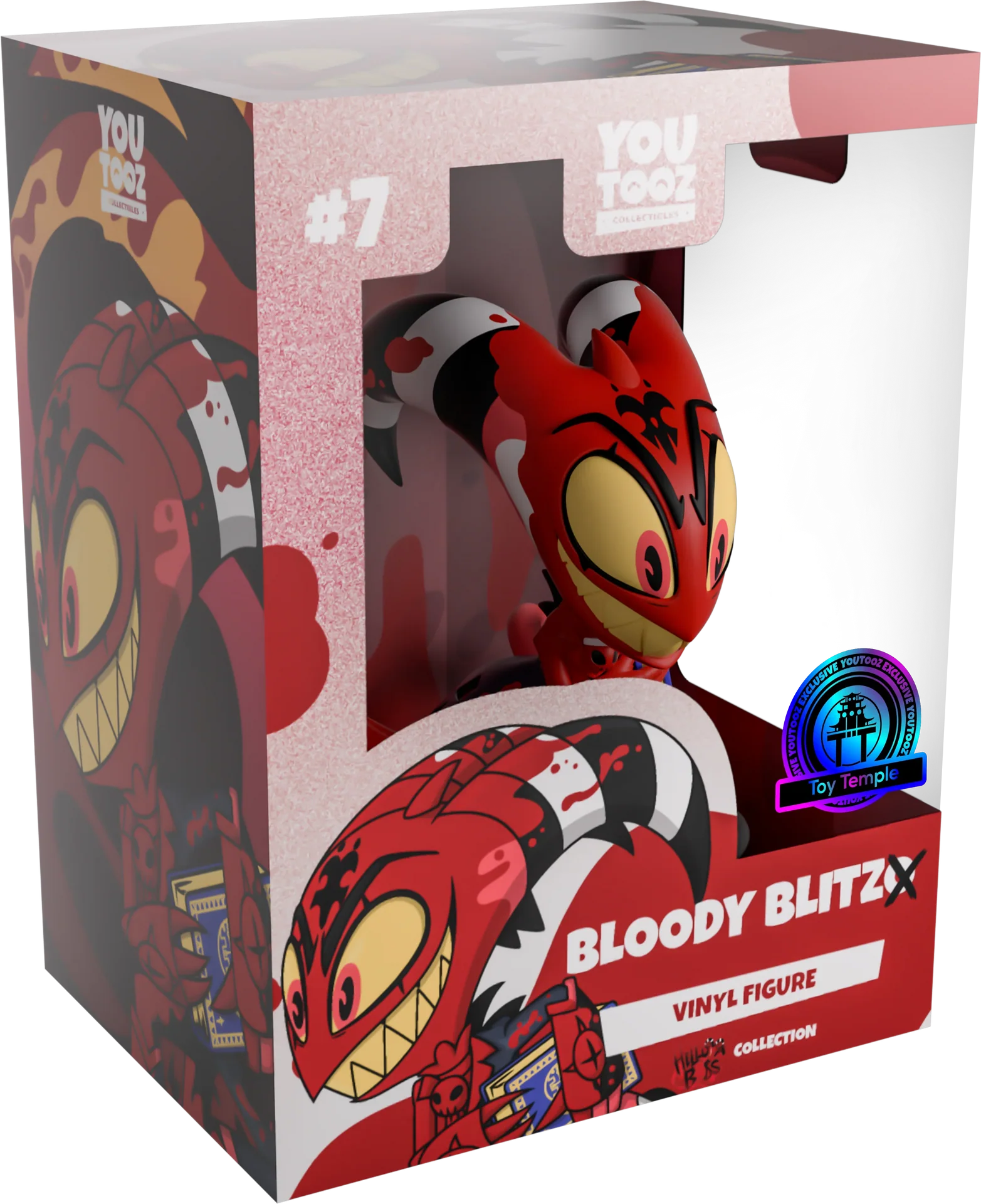 Blitzo est de retour sur Youtooz ! Mais attendez, où était-il ? Vous savez quoi, je ne veux même pas savoir... Avec son front couvert d'éclaboussures de sang rouge viscéral de n'importe quelle pauvre âme malheureuse à qui un contrat a été mis sur lui, il fait un pas menaçant en avant du haut de ses 10,7 cm et serre un livre bleu sous son bras gauche tandis qu'un sourire aux dents acérées s'étend sur ses yeux jaunes perçants rouges et blancs. Avec deux longues cornes incurvées à rayures noires et blanches s'étendant vers l'arrière depuis le sommet de leur tête, ils portent un manteau en lambeaux imbibé de sang sur un haut blanc avec un visage de crâne rouge au niveau du cou et des bottes épaisses tandis qu'une queue pointue sort de derrière. L'extérieur de leur emballage voit une silhouette maniaque tachée de sang sur un fond sombre, tandis que l'intérieur les entoure entièrement de rayures marron qui rappellent un papier peint sale couvert de sang qui coule. La pochette de protection est ensuite décorée de rayures diagonales noires et blanches recouvertes d'éclaboussures rouges vives et est imprimée avec le logo « Helluva Boss » tandis que leur personnage peut être vu à travers la grande fenêtre d'affichage transparente à l'avant. Cet objet de collection est livré dans une pochette extérieure protectrice mate et gaufrée et un protecteur en plastique de taille personnalisée pour une protection maximale pendant l'expédition.