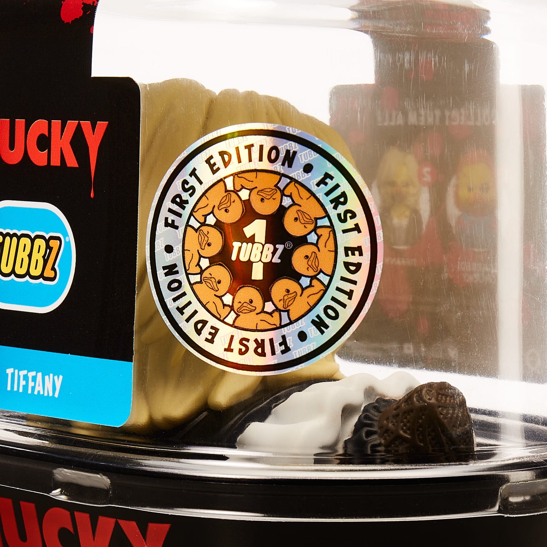 - Un TUBBZ "première édition". Livré dans une baignoire de collection, avec le logo Chucky, « First Edition » imprimé sur la base du canard et un autocollant sur l'emballage.