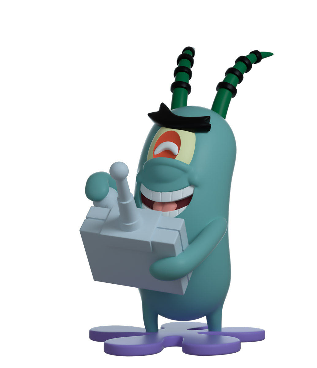 Plankton en a fini avec le Krusty Krab et a jeté son dévolu sur Youtooz ! Faisant ses débuts à 4,4 pouces de hauteur, ce génie redoutable est posé avec les deux mains agrippant une télécommande grise complexe tandis que sa bouche s'ouvre sur un immense sourire révélant ses dents brillantes. Son unibrow noir épais sillonne son grand œil orange strabisme singulier, tandis que ses antennes vertes et noires poussent du haut de son corps en forme de haricot turquoise. L'extérieur de son emballage montre Plankton avec sa plus grande création Robot SpongeBob. Alors que l'intérieur est un dégradé bleu océan collé avec des illustrations de Bob l'éponge. La pochette de protection est imprimée du motif triangulaire jaune vif de Bob l'éponge. Cet objet de collection est livré dans un manchon extérieur mat, gaufré et protecteur et un protecteur en plastique de taille personnalisée pour une protection maximale pendant l'expédition.