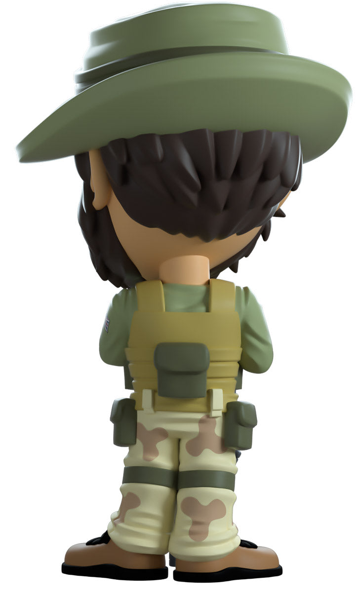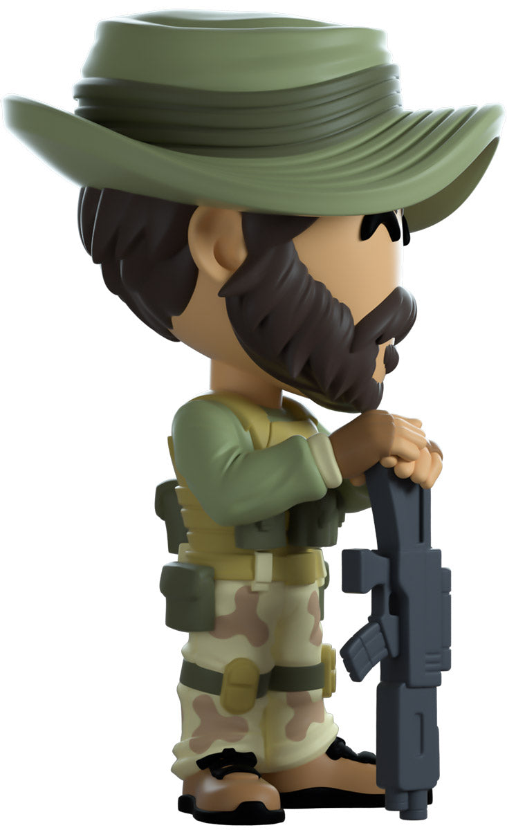 Vous savez maintenant que c'est une affaire sérieuse car le capitaine Price a été appelé sur Youtooz ! Debout mesurant 4,7 pouces avec des mains gantées de marron reposant sur la crosse du long fusil d'assaut noir qui est calé devant lui, une expression stoïque traverse son visage couvert d'une barbe brune touffue et d'une épaisse moustache. Vêtu d'un chapeau vert à larges bords et d'une veste pare-balles olive sur une chemise verte à manches longues, des poches et un équipement de protection recouvrent son pantalon camouflage du désert qui mène à de solides bottes marron. L'intérieur de son emballage est une série de motifs angulaires rouge foncé, tandis que l'extérieur est recouvert d'une carte topographique grise qui s'étend sur la pochette de protection, laissant juste sa silhouette visible à travers la grande fenêtre d'affichage transparente située à l'avant. Cet objet de collection est livré dans une pochette extérieure de protection mate en relief et un protecteur en plastique de taille personnalisée pour une protection maximale pendant l'expédition.