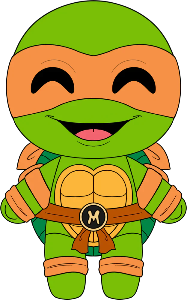 Les tortues sont de retour pour combattre le mal, mais maintenant sous la forme de chibi la plus adorable ! Debout à 9 pouces de hauteur avec des yeux incurvés ravis brillant du masque orange qui s'enroule autour de sa tête parfaitement ronde et est attaché à l'arrière, un large sourire ouvert s'étend sur son visage joyeux ! La ceinture marron à sa taille est sécurisée par un médaillon doré avec un « M » sur le devant, et passe autour de son abdomen jaune et de sa carapace vert foncé, tandis que ses bandes de bras et de jambes ainsi que ses protège-coudes correspondent à l'orange vif de son masque. Cette peluche est emballée jusqu'aux coutures avec du coton 100% PP et composée d'un mélange de matières minky sublimées et normales, absolument parfaite pour câliner ou partager une pizza avec !