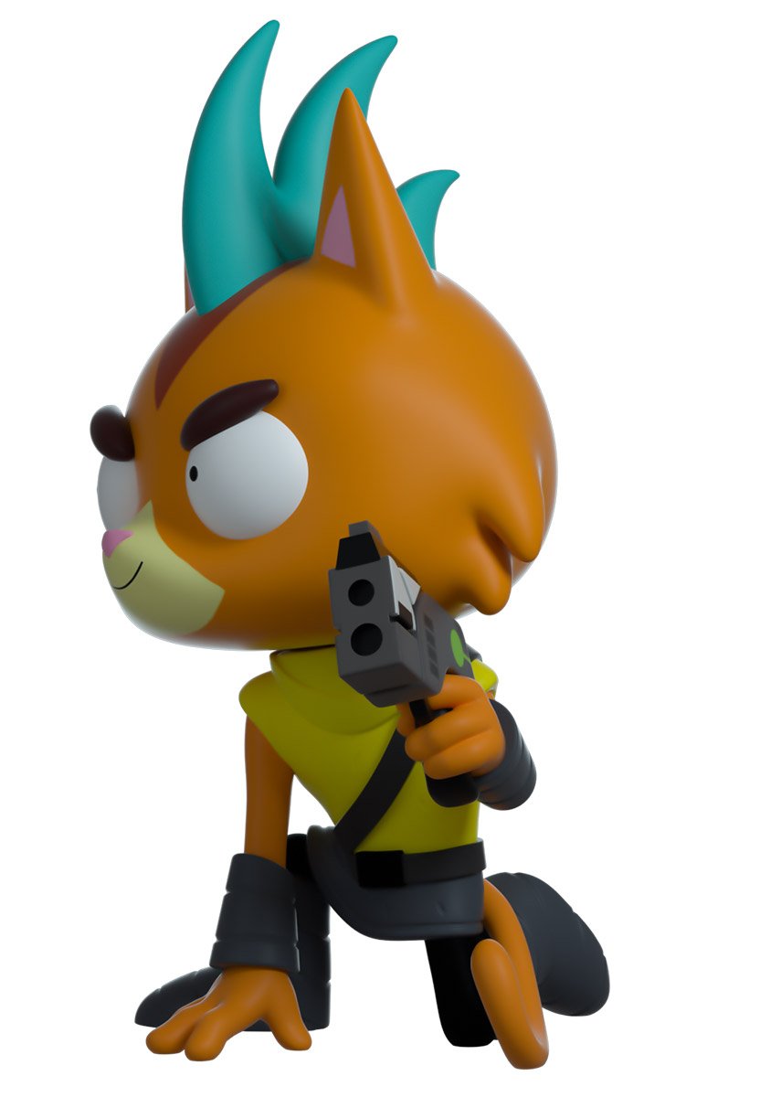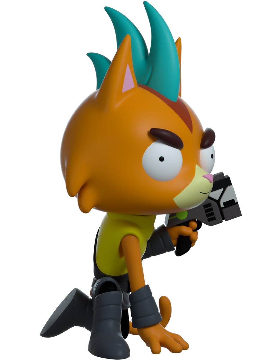 Lil Cato, champion junior d'élite Thimbles de Ventrexia et maître beatboxer, se fraye un chemin dans Youtooz ! Accroupi et prêt à l'action à 3,8 pouces de hauteur, il brandit un pistolet dans sa main gauche avec un regard déterminé dans les yeux et une bouche souriante. Vêtu d'un gilet jaune à col haut, d'une ceinture et de bottes grises, son mohawk turquoise vibrant se tient droit entre deux oreilles orange pointues tandis que sa longue queue balaie autour de lui sur le côté. L'extérieur de son emballage est une planète désolée marécageuse avec de nombreuses lunes jonchant le ciel orange et vert. Alors que l'intérieur est un fond cosmique vert olive brumeux. Le manchon de protection recrée le plafond du vaisseau spatial avec des bouches d'aération exposées et des lumières blanches brillantes. Cet objet de collection est livré dans un manchon extérieur mat, gaufré et protecteur et un protecteur en plastique de taille personnalisée pour une protection maximale pendant l'expédition.