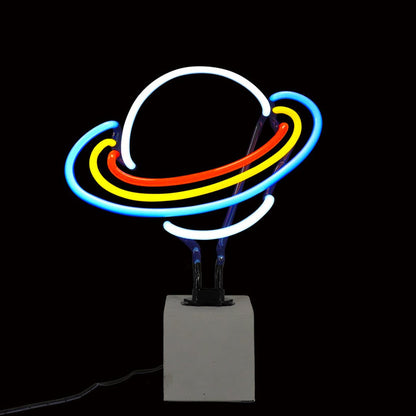 Ce néon "Saturne" est hors de ce monde. Cette lampe néon de table est fabriquée à la main avec du vrai néon en verre et est montée sur une base en béton élégante. Un éclairage amusant et unique, défendant cette véritable lueur de néon rétro que vous ne pouvez pas battre.