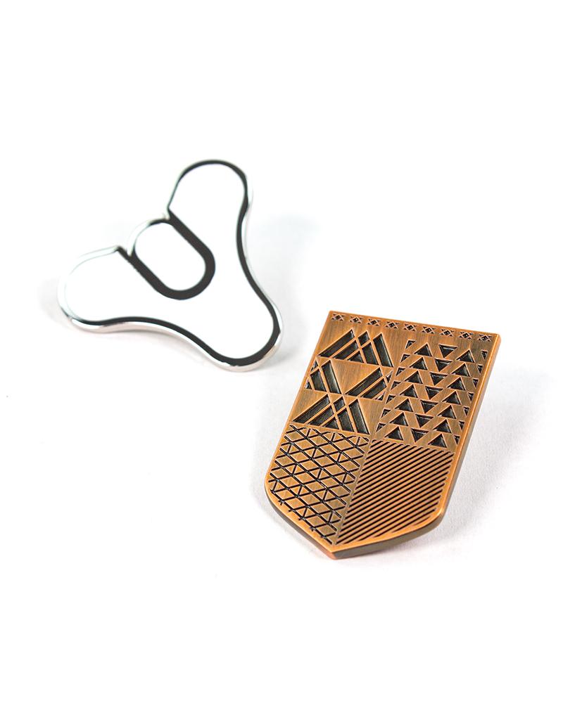 - Deux broches en métal émaillé dur de qualité supérieure avec une finition brillante avec le Tricorn et le Guardien sur une carte de support
