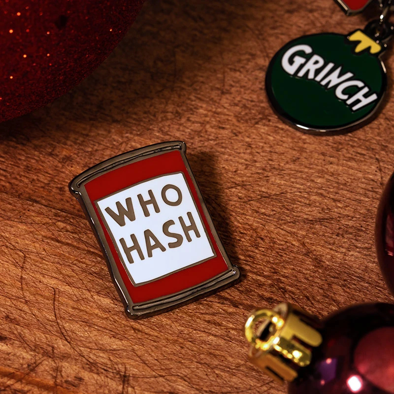 Si vous êtes un résident de Whoville, vous avez probablement eu le privilège de vous livrer à certains Who Hash pendant la saison des fêtes de Noël! Sa gourmandise reçoit même le sceau d'approbation du Grinch. Montrez-lui un peu d'amour en vous procurant cet ensemble de pins en émail haut de gamme, idéal pour le fixer à votre manteau, sac ou accessoires.