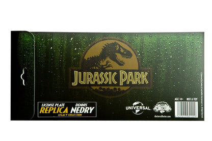 - Réplique à l´échelle 1/1 de la célèbre plaque minéralogique ´Dennis Nedry´ de la voiture du film ´Jurassic Park´.