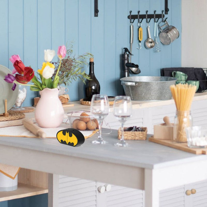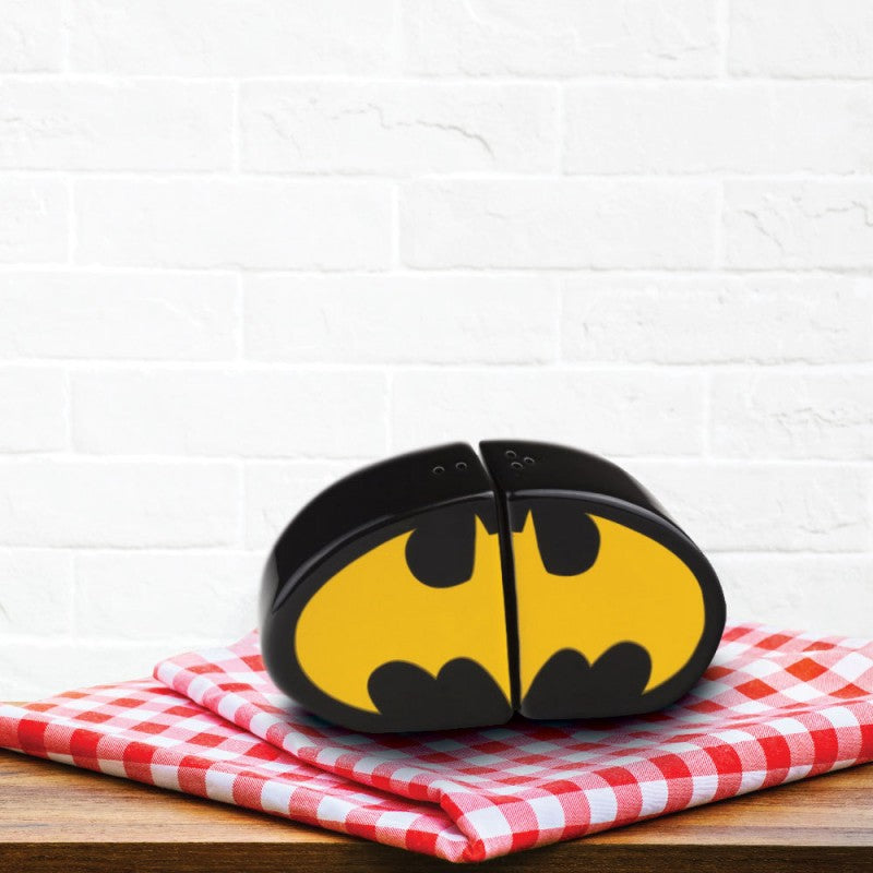 Cette salière et cette poivrière sous licence officielle DC Comics permettent de former le logo chauve-souris.