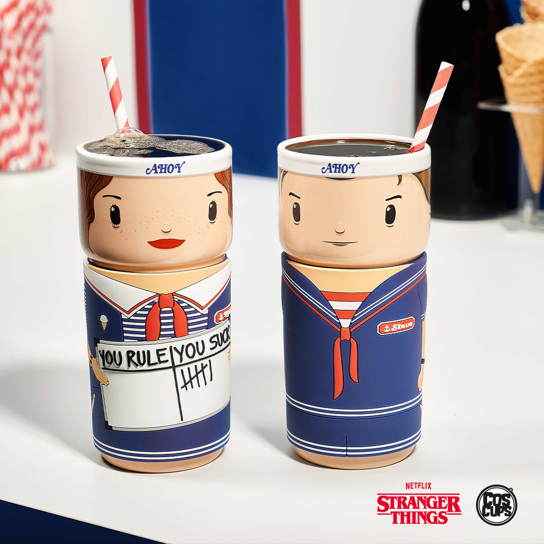 - Gobelet cosplay réutilisable de Steve des films Stranger Things.