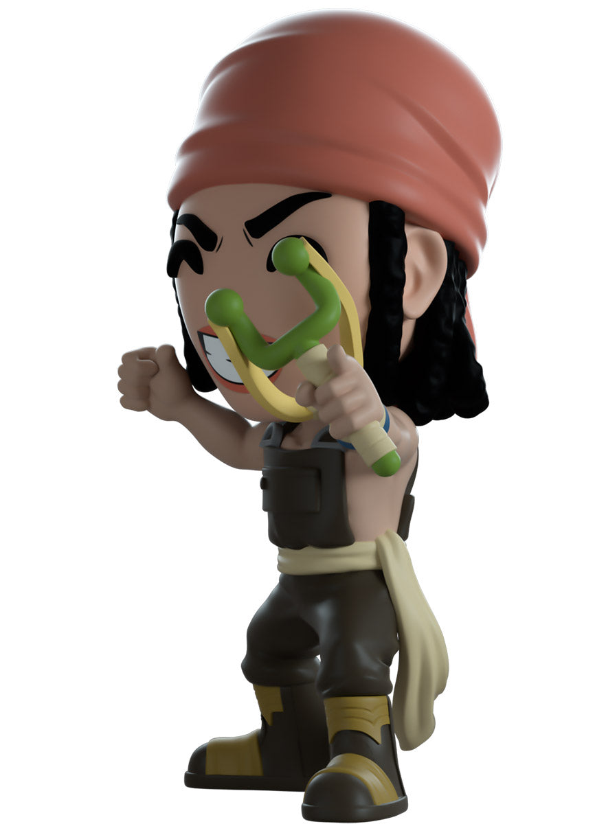 Usopp a visé et a mis Youtooz dans sa ligne de mire pour ses débuts fantastiques ! Se préparant après avoir pris un tir dévastateur avec la fronde verte saisie dans une main gauche tendue et mesurant 4,5 pouces de hauteur, son visage brille d'un sourire optimiste sous un sourcil levé. Vêtu d'un bandana orange brûlé sur de longues mèches d'épais cheveux noirs, sa salopette marron a un tissu léger noué autour de la taille et expose ses bras musclés tandis que sa tenue est complétée par des bottes robustes. L'extérieur de son emballage montre la silhouette du Vogue Merry assis dans des eaux calmes devant un coucher de soleil bas. Alors que l'intérieur voit une vague bleue vibrante s'écraser envoyant de l'écume de mer blanche vers le ciel devant un magnifique fond jaune pâle, ce motif coule ensuite sur la pochette de protection où sa silhouette peut être vue à travers la grande fenêtre d'affichage transparente située à l'avant. Cet objet de collection est livré dans une pochette extérieure de protection mate en relief et un protecteur en plastique de taille personnalisée pour une protection maximale pendant l'expédition.