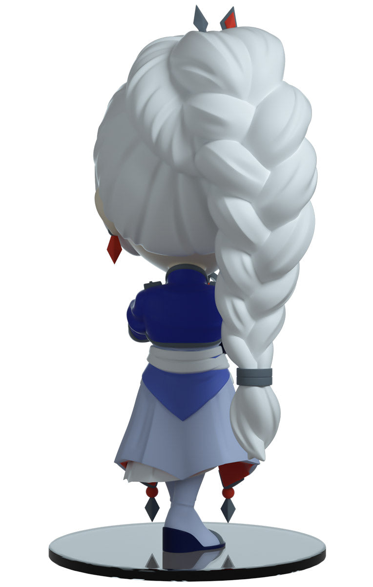 Le W de RWBY arrive chez Youtooz ! Posée à 4,9 pouces de hauteur, Weiss dégage une émotion sérieuse sur son visage alors que son attitude ne signifie que des affaires. Ses longs cheveux blancs sont tirés en arrière en une haute tresse en queue de cheval avec une frange qui encadre son visage. Elle est posée avec les deux mains tenant sa rapière, Myrtenaster. Elle est vêtue d'une robe sans manches bleu pâle avec deux pièces en forme de losange suspendues aux coins de l'ourlet, sur une robe bustier blanche à ourlet diagonal. En haut, elle porte un boléro bleu vif avec un col montant et des manches bouffantes. Sur ses bras se trouvent une paire de longs gants bleu marine. Pour ses chaussures, elle porte de longues bottes à talons compensés bleu pâle avec des volants blancs en haut sur le devant, ainsi qu'une couleur bleu grisâtre sur les orteils et des talons compensés bleu marine. L'extérieur de son emballage présente une atmosphère intérieure noire avec des lignes de couleur cyan autour des murs et des sols. L’intérieur est un fond blanc avec des pétales de fleurs de couleur pervenche/gris très clair flottant autour. Cet objet de collection est livré avec une pochette extérieure de protection et un protecteur en plastique de taille personnalisée pour une protection maximale pendant l'expédition.