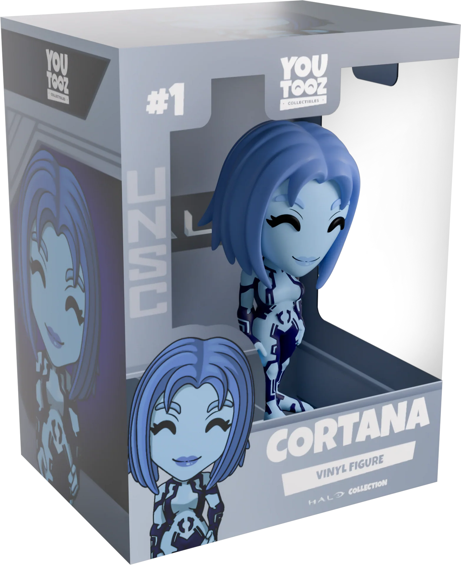 Youtooz e ka ngarkuar Cortanën direkt në sistemin tonë për debutimin e saj absolutisht mahnitës! Me një gjatësi prej 11.5 cm, kokën e anuar anash ndërsa një buzëqeshje e hollë dhe e gëzueshme i përshkon fytyrën blu, flokët e saj blu të errët janë të ndarë në mes dhe bien mbi shpatullën e saj të prerë poshtë. Me dorën e mbështetur në vithe, trupi i saj i zbehtë është i mbuluar me shenja të errëta që shtrihen nga jaka e saj, poshtë krahëve dhe barkut deri te majat e këmbëve të zbathura. Pjesa e jashtme e paketimit të saj tregon Cortanën duke parë poshtë një Master Chief gjigant, ndërsa pjesa e brendshme gri e çelët është e mbuluar me dizajne të pjerrëta që shtrihen në mbështjellësen mbrojtëse me logon e UNSC, ndërsa silueta e saj mund të shihet përmes dritares së madhe transparente në pjesën e përparme të paketimit. Ky koleksionues vjen në një mbështjellëse të jashtme mat, të stampuar, dhe një mbrojtës plastik me madhësi të personalizuar për mbrojtje maksimale gjatë transportit.