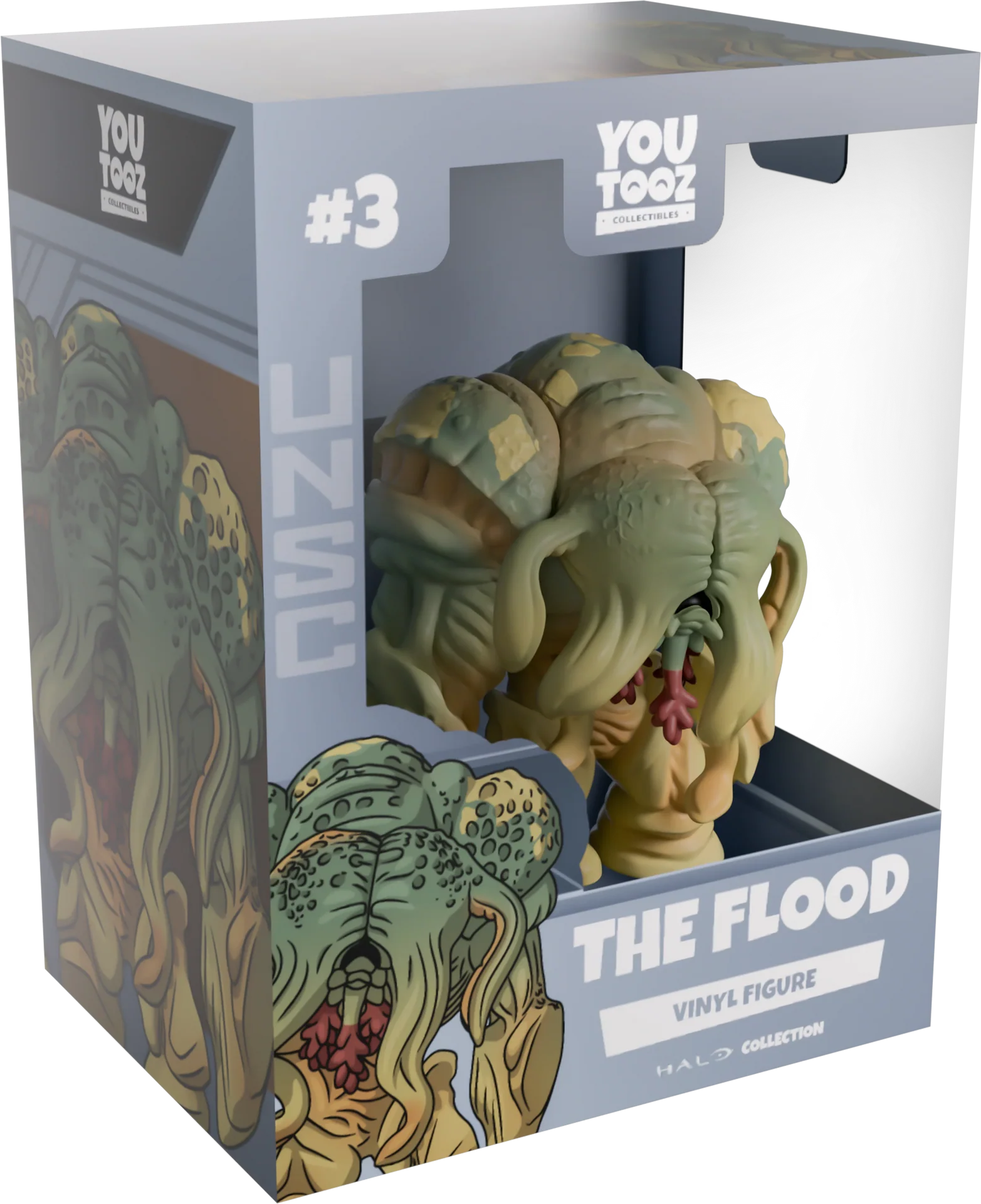 Nëse një spore e vetme e Flood është e mjaftueshme për të zhdukur një specie, atëherë Youtooz është me siguri i dënuar! Ata përkulen përpara dhe ulen 11 cm në lartësi me fije të trasha që varen nga të dyja anët e një "goje" të kuqe të errët, gati për të nxjerrë një shpërthim forme të infektuar të ngjashme me Flood. Supet masive të trupave të tyre të formuar jeshil dhe të verdhë dalin nga anët, ndërsa kthetrat e një krahu të gjatë e të drejtë zvarriten përgjatë tokës pranë trungjeve të tyre të trasha të këmbëve. Pjesa e jashtme e paketimit të tyre tregon Flood që ngrihet në fund të një tuneli kafe të errët, ndërsa pjesa e brendshme gri e çelët është e mbuluar me dizajne të pjerrëta që shtrihen në mbështjellësin mbrojtës me logon e UNSC, ndërsa silueta e tyre mund të shihet përmes dritares së madhe transparente në pjesën e përparme të paketimit. Ky koleksionues vjen në një mbështjellës të jashtëm mat, të stampuar, dhe një mbrojtës plastik me madhësi të personalizuar për mbrojtje maksimale gjatë transportit.